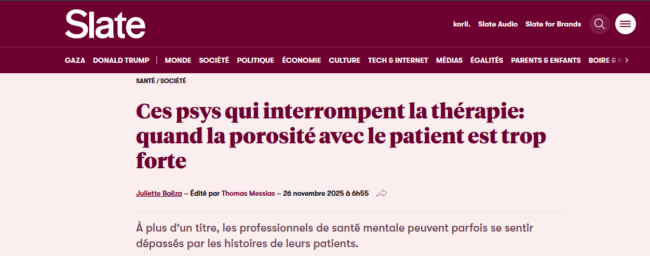 Après l’article Ouest France que je vous ai partagé dans le précédent article, suite à une interview à laquelle j’ai répondu, je vous partage ce jour un article paru sur le site du magazine Slate. Pour celui-ci j’ai été interviewé par Juliette Baëza, ainsi que d’autres psychologues, sur la question de la fin de la…